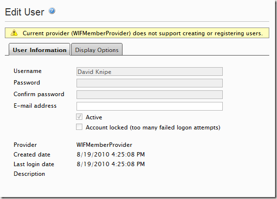 At this point what we have is a set of role and membership providers that allows EPiServer to see WIF claims through read-only role and membership providers: