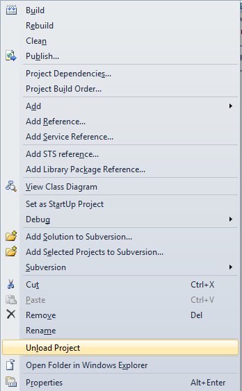 - Select "Unload Project":