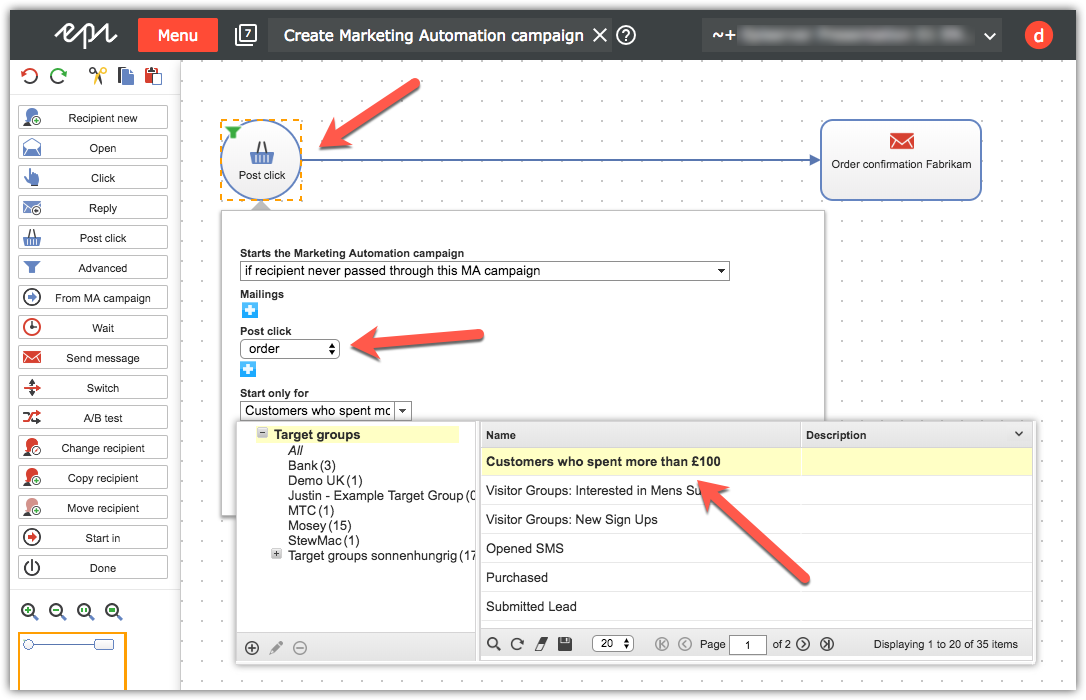 The target groups can be used to check whether users have for example purchased products, viewed categories, or seen particular pages on a site. These target groups can in turn be used to create very powerful marketing automation flows by having a full aweness of a customer’s journey on the site when sending a mail.