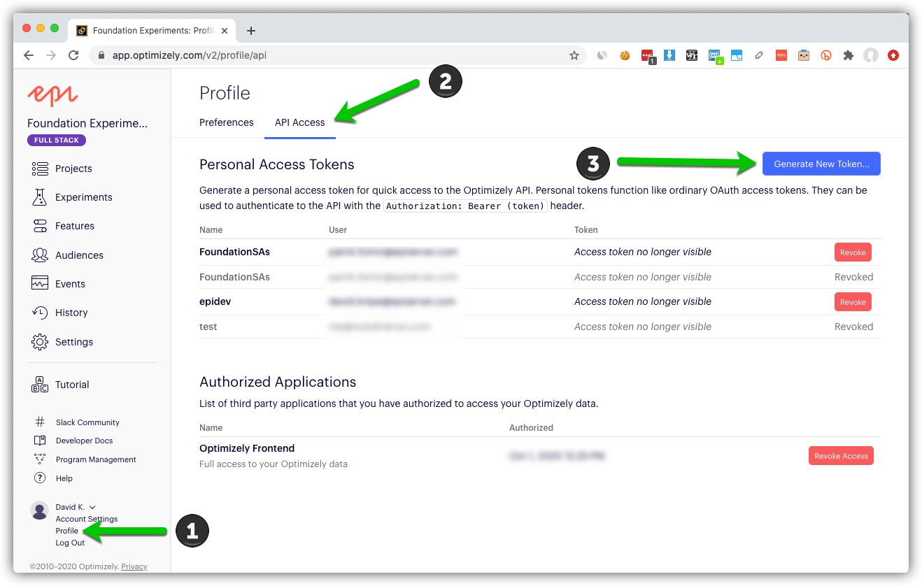 When setting up the experiment in Episerver then the Optimizey REST Api is required. Get the Optimizely REST authentication token using the Optimizely Full Stack UI get the REST authentication token as shown below: