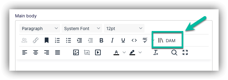 However currently there is no way to select images for use inside TinyMCE. So I have put a button together to allow editors to select images from the Optimizely DAM inside the TinyMCE editor in Optimizely CMS 12. Once installed a new button appears that looks as follows: